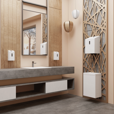 Nachfüllbarer Flüssigseifenspender mit Bedienhebel und CleanTip Technologie