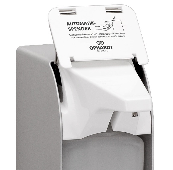 Integrierte Notbedienhebel sorgen dafür, dass der sensorgesteuerte Eurospender auch im seltenen Fall eines geringen Batterielevels genutzt werden kann.