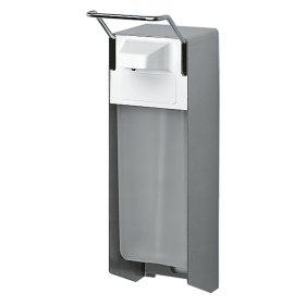 ingo-man® T 26 E/24 soap and disinfectant dispenser, for 1000 ml standard Euro bottles, short operating lever, brushed stainless steel, exchangeable stainless steel pump 24 with bent suction tube, different dosage adjustments (approx. 0.7/ 1.0/ 1.5 ml/stroke), 1 clip, PET Euro bottle incl.