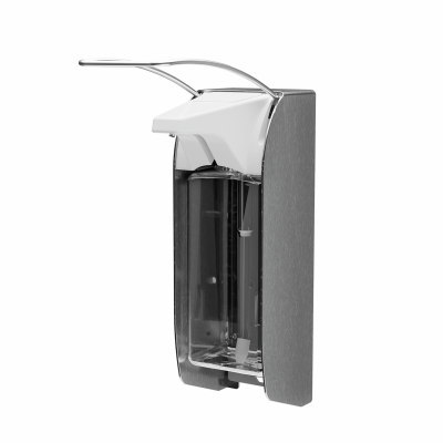 ingo-man® plus IMP TLS E/24, soap and disinfectant dispenser, for 1000 ml standard Euro bottles, long operating lever, brushed stainless steel, exchangeable stainless steel pump 24 with bent suction tube, different dosage adjustments (approx. 0.75/ 1.0/ 1.2/ 1.5 ml/stroke), 1 clip, PET Euro bottle incl.