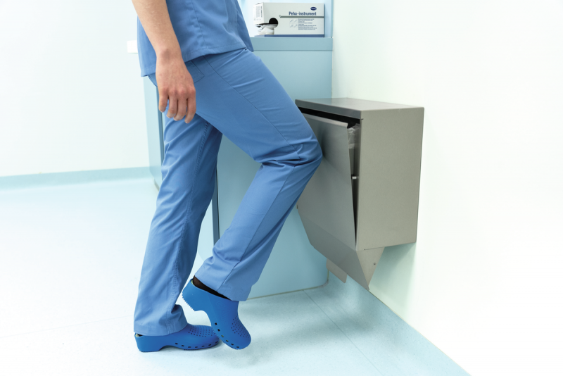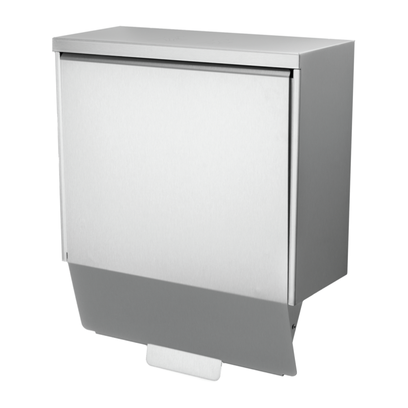 ingo-slide 15 E ST, closed waste bin, simple to use: open with toe / close with knee, with soft-closing, 15 litres, stainless steel, with anti-fingerprint-coating, with polybag safety catch, including panel as storage for spare rolls of plastic bags, removable inner container, only for wall mounting