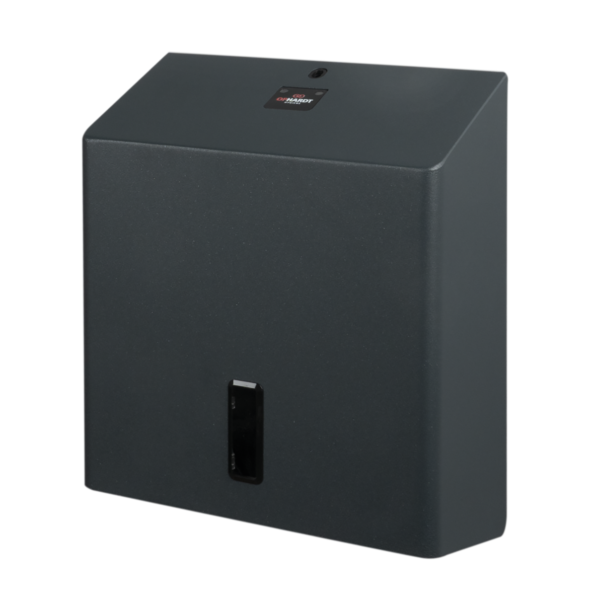 SanTRAL® Plus PTU 31 P Slate Grey (SG), paper towel dispenser, for max. of 2 packs of paper towels (approx. 500-600 sheets), stainless steel, anthracite powder coated with a subtle structure, universal SanTRAL® Plus stainless steel removal for all common types of paper (Layerfold, V-, Z- and ZZ-fold, Multi- and Interfold), lockable, with fill level window, sloped-top housing prevents placement of unwanted objects on dispenser