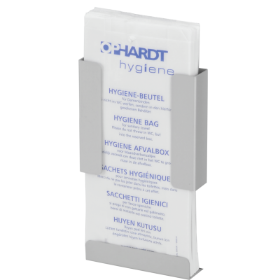 ingo-man® HB 1 A sanitary bag dispenser for paper sanitary bags, matte-silver anodized aluminium, to complement waste bins in ladies' rooms