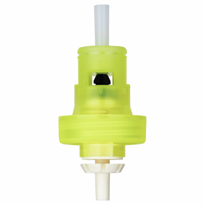 X38 Grit Cartridge pump, for bottles with 38 mm necks, dosage approx. 2.2 ml/stroke, yellow cylinder, green cap, compatible with all KX and Neptune™ dispensers, for dosing of Grit, excellent material resistance under heavy duty conditions, for collapsible bottles, non-vented, metal-free pump for improved recyclability