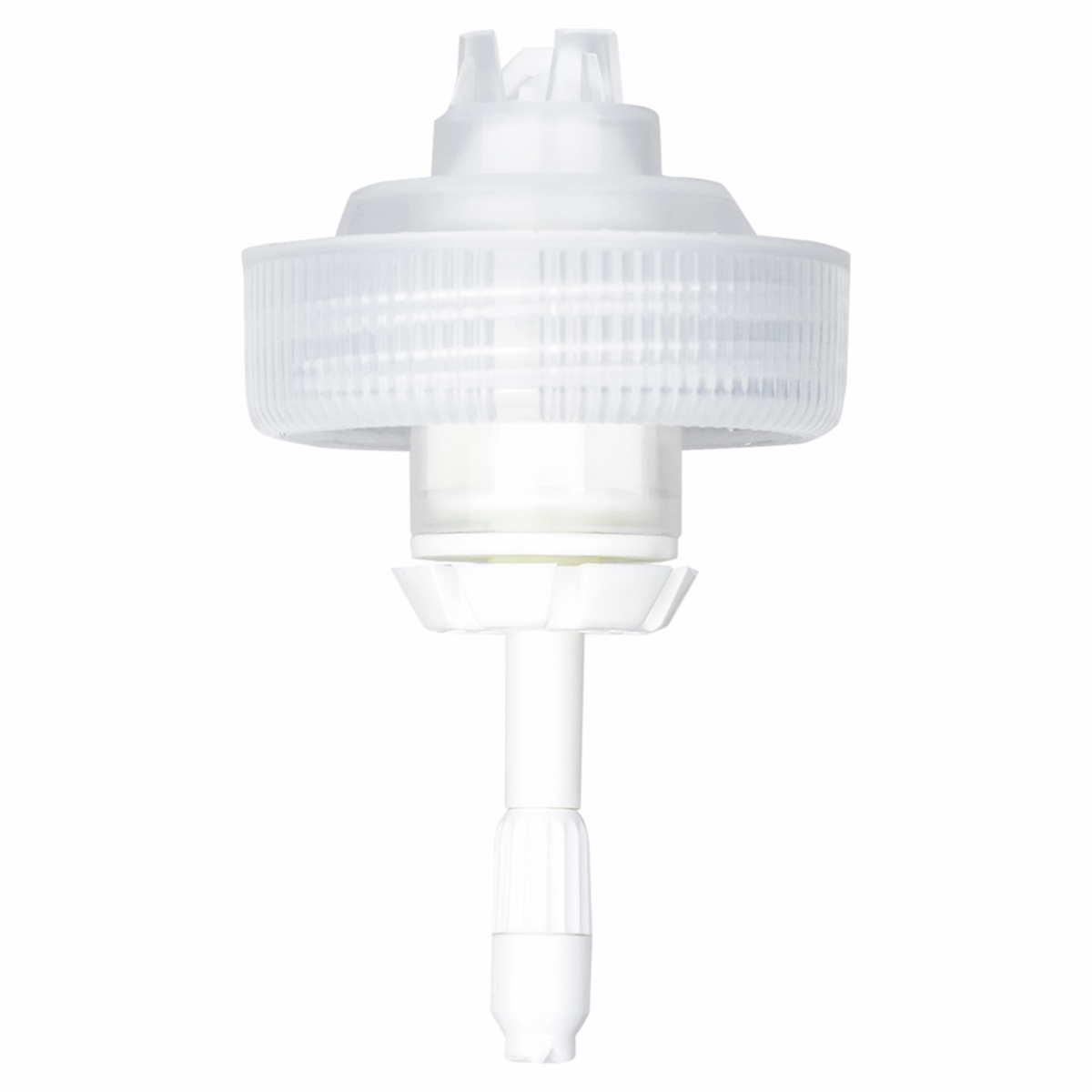X38 Spray Cartridge pump, for bottles with 38 mm necks, dosage approx. 1.1 ml/stroke, clear cylinder, clear cap, compatible with all KX, Neptune™ and UX dispensers, for spray dosage of low viscosity liquids, for collapsible bottles, non-vented, with CleanTip Technology (no drips or leaks), metal-free pump for improved recyclability