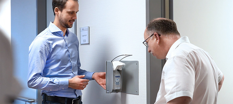 Händedesinfektionsmittelspender in unmittelbarer Patientennähe können die Händehygiene-Compliance um 25% steigern und werden von der WHO empfohlen.
