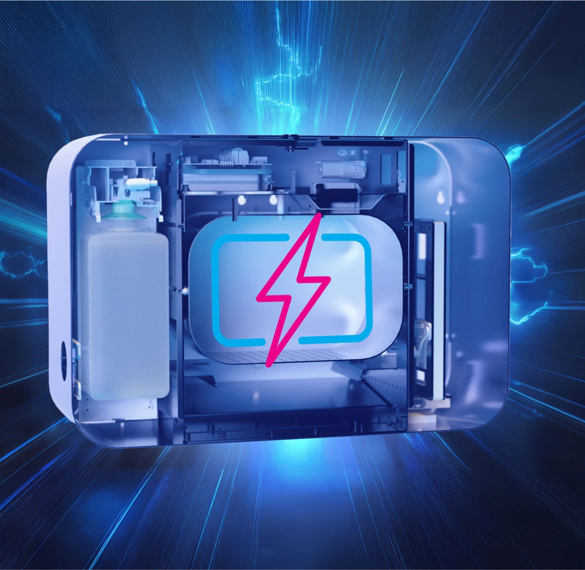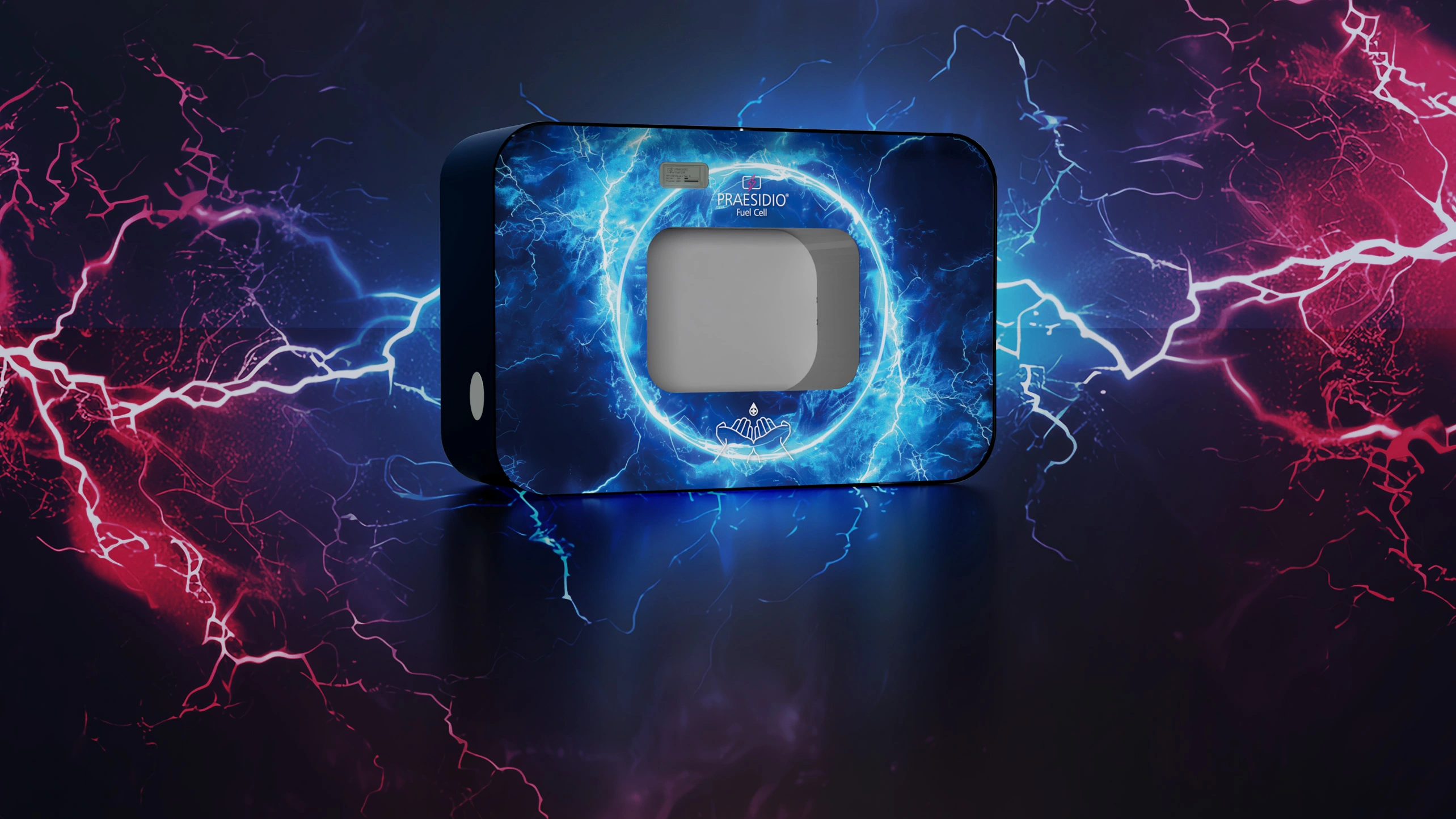 Wir vereinen die ausgereifte Technik der Brennstoffzelle mit unserer hochwertigen Spendertechnologie. Das Ergebnis: Der PRAESIDIO® Fuel Cell - als erster berührungsloser Händedesinfektionsmittelspender mit integrierter Brennstoffzelle.