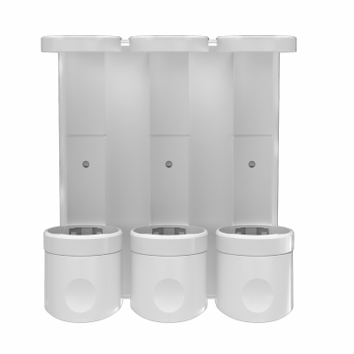 H3 Dreifach-Kartuschenspender, ABS-Kunststoff, weiß, für den Einsatz von recycelbaren Pumpen für verschiedene Füllgüter (Lotion, Schaum, Gel), für recycelbare 450 ml PET-Flaschen, für Wandmontage, optimal für Waschräume, Duschen und Toilettenbereiche in Hotels und weiteren Unterkünften
