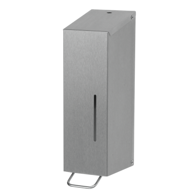 Seifenspender aus Edelstahl mit Bedienhebel und Sichtfenster zur Füllstandskontrolle