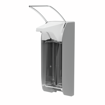 ingo-man® plus IMP T A/25, soap and disinfectant dispenser, for 1000 ml standard Euro bottles, short operating lever, matte-silver anodized aluminium, exchangeable stainless steel pump 25 with straight suction tube, different dosage adjustments (approx. 0.75/ 1.0/ 1.2/ 1.5 ml/stroke), 1 clip, PET Euro bottle incl.