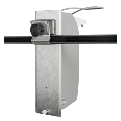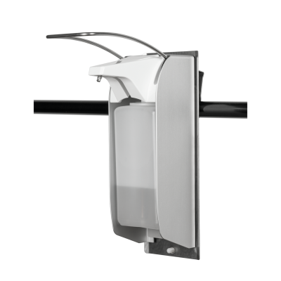ingo-man® WH R2 dispenser holder for tubular frames, round, clamping range 20 to 35 mm, made of stainless steel, for 1000 mlingo-man®® dispenser with aluminium housing and dispensers from the RX 10, LCP T and ER T series, for patient-oriented mounting at the point of care