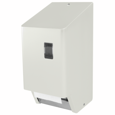 SanTRAL® Classic TRU 2-2 P Ivory White (IW), toilet paper dispenser for 2 standard toilet paper rolls, stainless steel, white powder coated (RAL 9010), lockable, with fill level window, max. roll diameter 120 mm, improved accessibility of the toilet paper roll