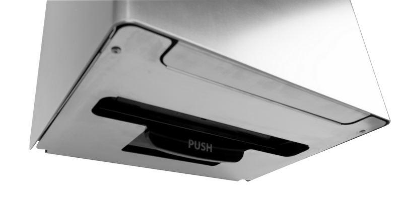 SanTRAL® Plus ACU 1 E Steel Touch (ST), Autocut dispenser for roll paper towels, brushed stainless steel, with anti-fingerprint-coating, with automatic cutting producing single-sheets when paper pulled downwards, for towel paper rolls without perforation up to 210 mm diameter, max. roll width 190-210 mm, core diameter > 36 mm, with emergency operating lever, lockable, with fill level window, sloped-top housing prevents placement of unwanted objects on dispenser